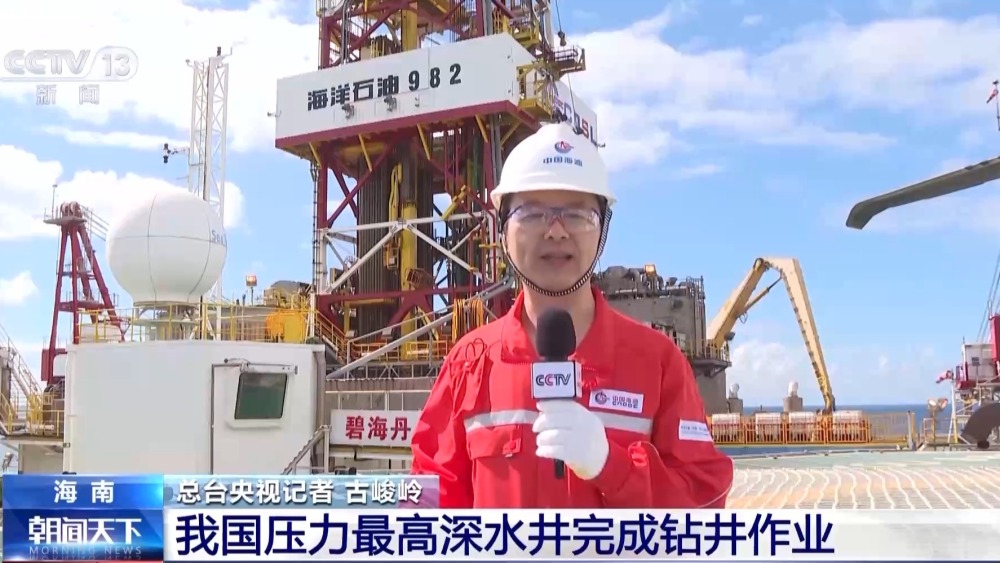 總臺(tái)央視記者 古峻嶺:我現(xiàn)在是在海南島東南方向約180公里處的海洋石油982鉆井平臺(tái)上,在我腳下約1000米深處的海底 ,就是剛剛完成鉆井作業(yè)的A12井,它的地層絕對(duì)壓力超過69兆帕,相當(dāng)于我們家用高壓鍋工作壓力的1000倍。