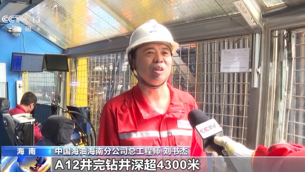 中國(guó)海油海南分公司總工程師 劉書杰:A12井完鉆井深超過4300米,至此,“深海一號(hào)”二期項(xiàng)目鉆井總進(jìn)尺已超過50000米,相當(dāng)于6座珠穆朗瑪峰的高度,鉆井作業(yè)總體進(jìn)度達(dá)到90%,為項(xiàng)目按時(shí)投產(chǎn)奠定堅(jiān)實(shí)基礎(chǔ)。