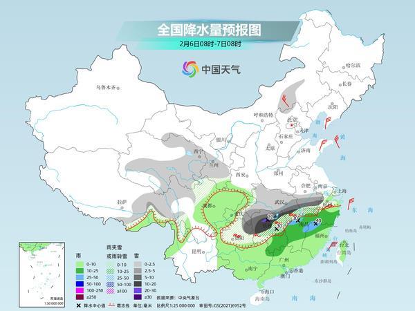 今明天(2月6日至7日)南方大范圍雨雪天氣將持續(xù),7省市部分地區(qū)有大到暴雪,局地大暴雪,湖南大部、湖北東南部等地仍有凍雨。在雨雪影響下,南方大部氣溫持續(xù)低迷,而北方降水稀少氣溫將率先回升。南方明顯回暖則要等到除夕之后。
