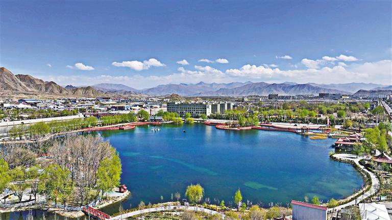 幽靜的貢覺林卡明珠湖,吉林援藏工作隊以“東情西韻、珠聯(lián)璧合”為主題進行規(guī)劃設計,與毗鄰的原班禪夏宮貢覺林卡形成整體,已經(jīng)成為日喀則城市旅游新景觀,市民休閑好去處;