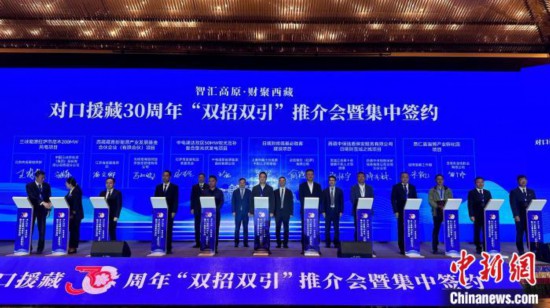 對口援藏30周年“雙招雙引”推介會暨集中簽約活動15日在拉薩舉行。此次推介會集中簽約援藏招商引資項目18個、協(xié)議投資104.07億元(人民幣,下同)。
