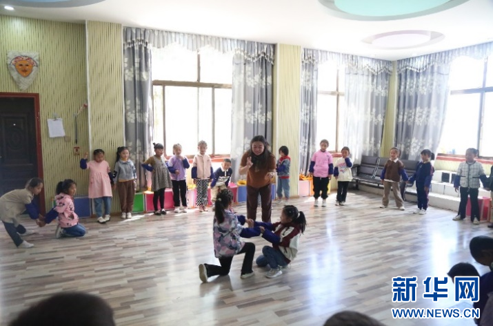 舞蹈教師孫曉哲在拉薩市北京小學指導學生舞蹈動作