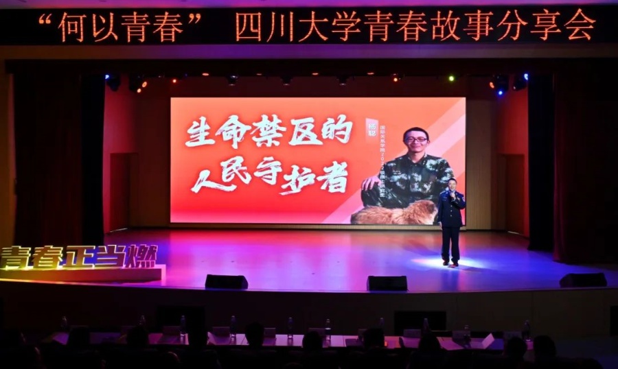 圖為楊聰正在四川大學(xué)青春故事分享會(huì)上演講。今年5月,他獲評(píng)四川大學(xué)2024年度“青年五四獎(jiǎng)?wù)隆?圖片來(lái)源:四川大學(xué)微信公眾號(hào)