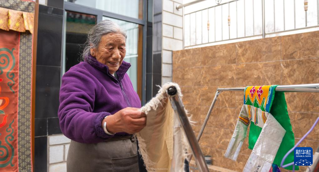 格桑玉珍在家中晾曬衣物(4月3日攝)。新華社記者 丁增尼達(dá) 攝