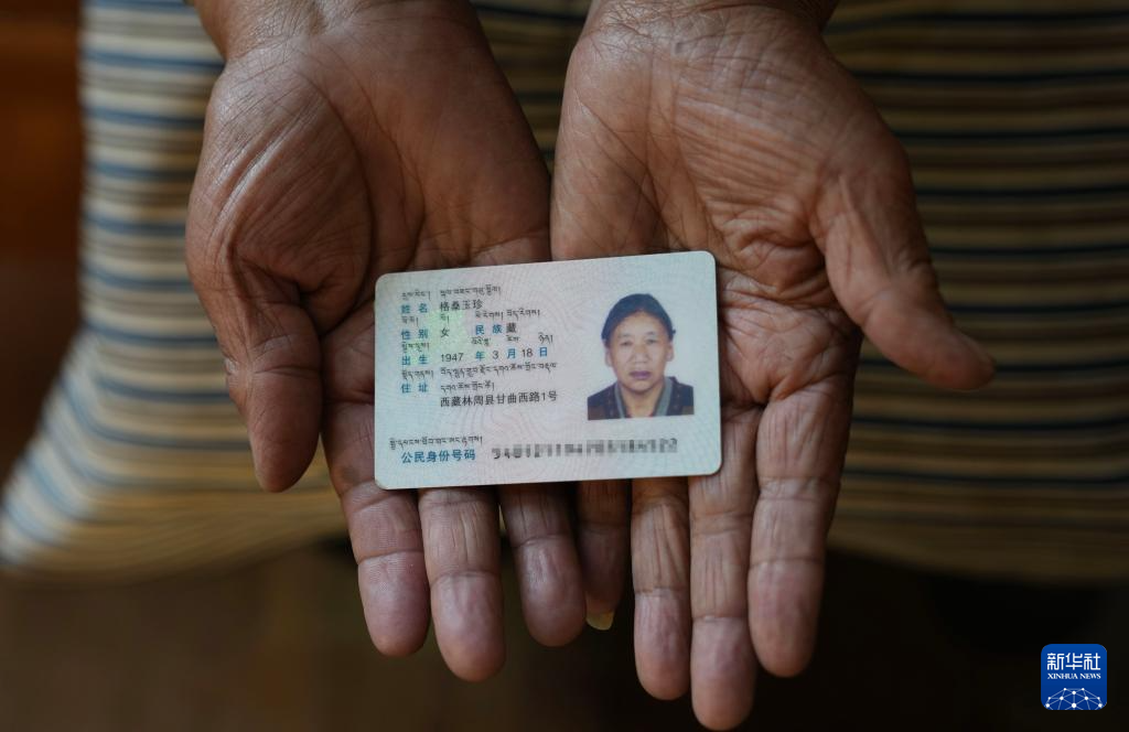格桑玉珍展示自己的身份證(4月3日攝)。新華社記者 晉美多吉 攝