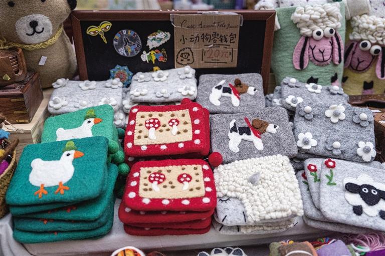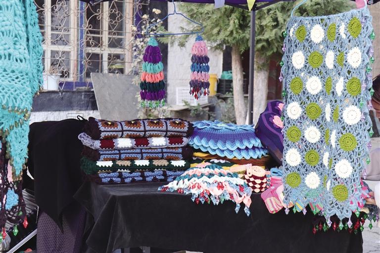 阿佳們親手鉤織的毛線茶杯套、毛線桌墊,既實用又色彩鮮明,墻上掛滿的手工編織牛毛包讓人“糾結(jié)癥”都犯了!和這座商城的建筑一樣,這里出售的美物將藏式美學(xué)展現(xiàn)得淋漓盡致。此外,這里還能淘到毛氈玩偶、毛氈風(fēng)鈴、毛茸茸的藏戲面具掛件等一些能給生活增添樂趣的“小廢物”。