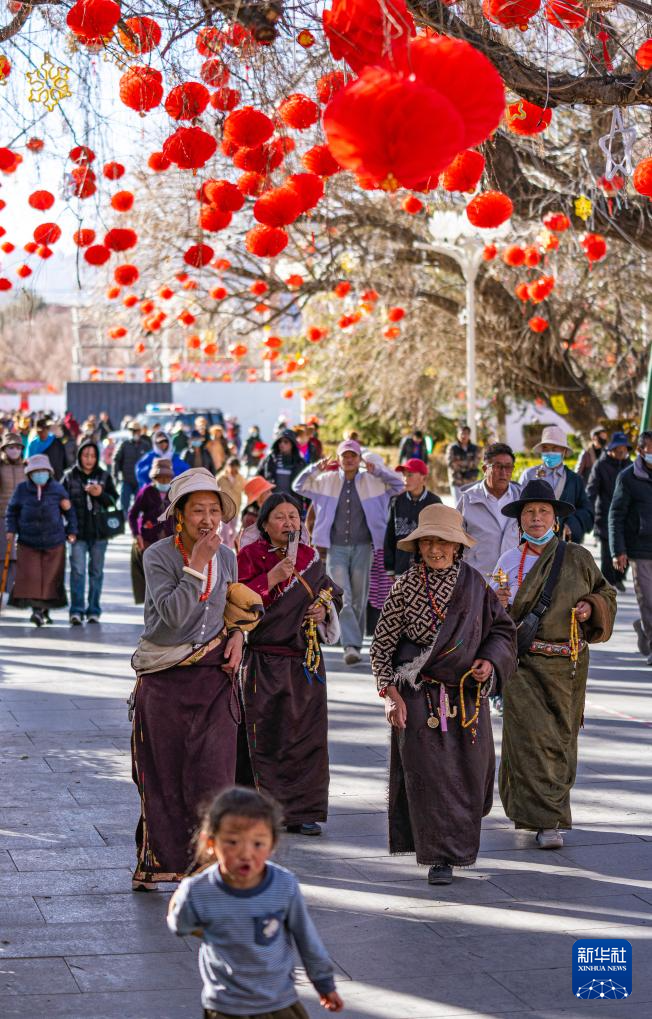 新春佳節(jié)期間,拉薩市在城區(qū)布置了許多春節(jié)裝飾,并開展豐富多彩的文娛活動。當?shù)厝罕姾陀慰吐健叭展庵恰?,感受濃濃年味?/p>