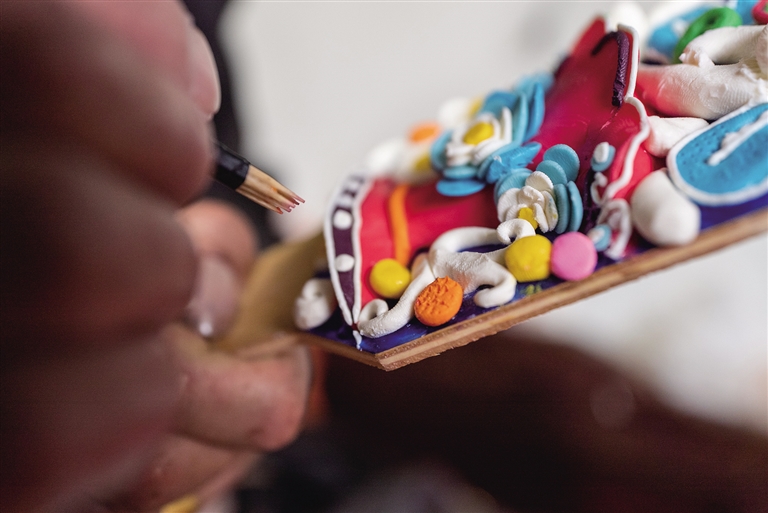 當(dāng)記者聊起如今市面上也有機(jī)器雕刻的酥油花時,師傅羅布次仁停下手中的活,說道:“酥油花是千年傳承下來的瑰寶,講究一年換一新,同樣也講究人們制作時注入的美好愿望和祝福。早在2013年,它就被列入西藏自治區(qū)級非物質(zhì)文化遺產(chǎn)名錄。如今雖然出現(xiàn)了機(jī)器雕刻的酥油花,但它們?nèi)绷舜鄠鞯牧α?,機(jī)械復(fù)制不了指尖傳遞的溫度。我們要傳承好這門技藝?!?/p>
