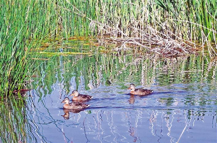 夏日的拉魯濕地美如畫。這是野鴨在拉魯濕地的水面上游弋。記者 洛?!z