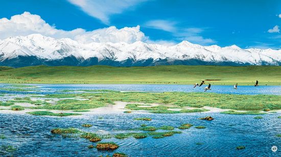 當我們飽覽過青海湖波瀾壯闊之盛景,為青海湖停住腳步的您一定會被眼前這方湛藍水域而深深吸引,柔風拂過湖面蕩起一圈圈漣漪,湖面上低翔而過的水鳥發(fā)出清脆鳴叫,水—鳥—魚和諧共生的生態(tài)美景躍然眼前。
