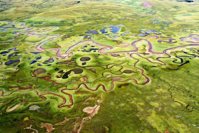 在西藏昌都市貢覺縣拉妥鄉(xiāng)拍攝的拉妥濕地(9月28日攝,無人機(jī)照片)。新華社記者 詹彥 攝