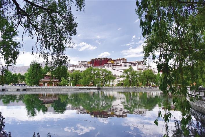 記者來(lái)到布達(dá)拉宮廣場(chǎng),看到有很多游客在湖邊拍照,湖面清澈得像一面鏡子,倒映著布達(dá)拉宮。這么美的畫面,小編也忍不住用相機(jī)記錄下來(lái)與大家分享。