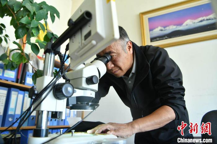 圖為方震東在做植物研究。 劉冉陽 攝