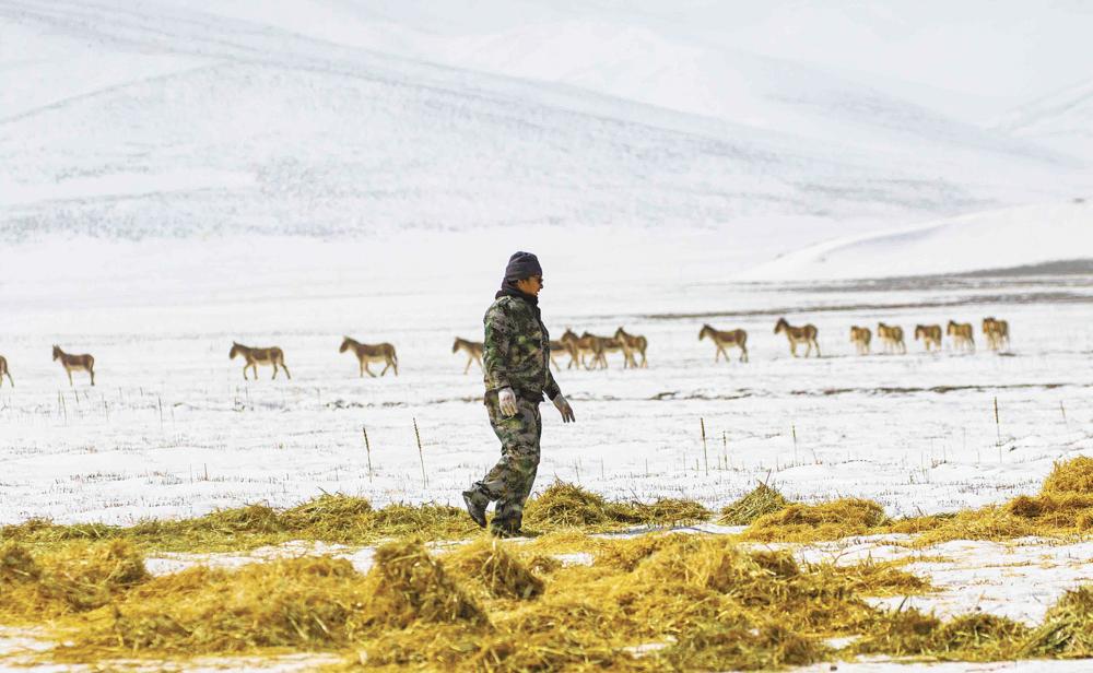 從戴上紅袖章那天開始,他就穿梭在山林、湖畔、河邊,有時撿拾垃圾,有時關(guān)注野生動物的蹤跡,默默守護這片家鄉(xiāng)的草場、湖泊、高山。在一次巡護中,切保和隊友們發(fā)現(xiàn)由于季節(jié)的變化,導(dǎo)致黑頸鶴等野生動物的巢穴被淹,給它們的生產(chǎn)棲息帶來了影響。于是,他和其他生態(tài)管護員為黑頸鶴等野生動物修巢筑窩12個。“不讓垃圾污染草場、污染動植物的水源地”是每一位管護員的共同想法。