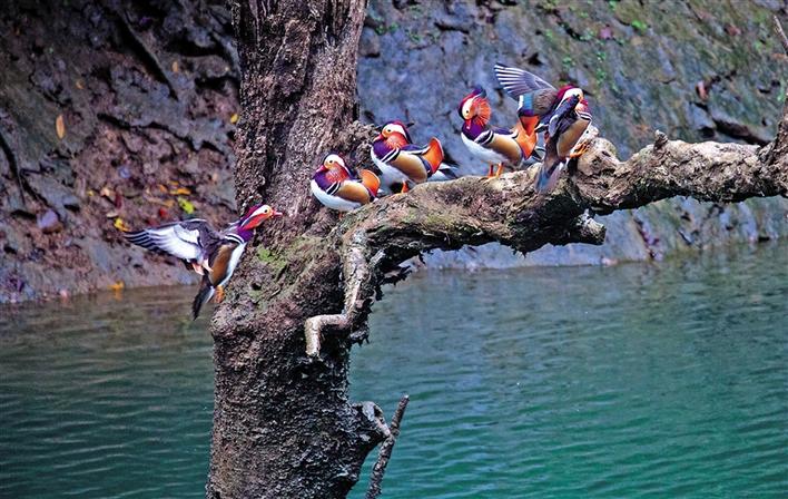 這是在湖南省邵陽市城步苗族自治縣境內的南山國家公園體制試點區(qū)拍攝的鴛鴦(2018年10月16日攝)。新華社發(fā) (湖南南山國家公園管理局供圖)
