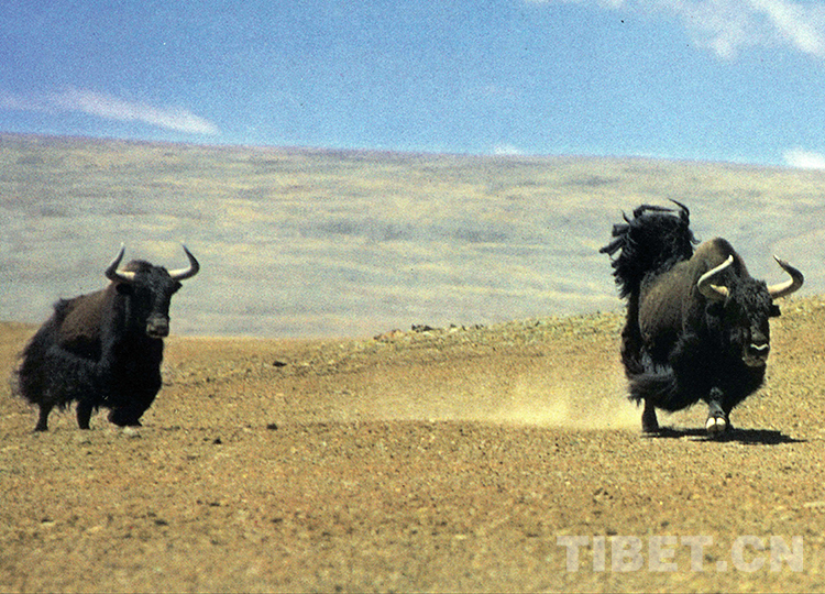 性情強悍的野牦牛傳宗接代的方式也是驚心動魄的。每年的七八月份是野牦牛的發(fā)情交配季節(jié)。雄性野牦牛相遇,必然展開一場激烈的角斗,勝利者獲得對雌性野牦牛的占有權(quán),戰(zhàn)敗者只能灰溜溜地落荒而逃。