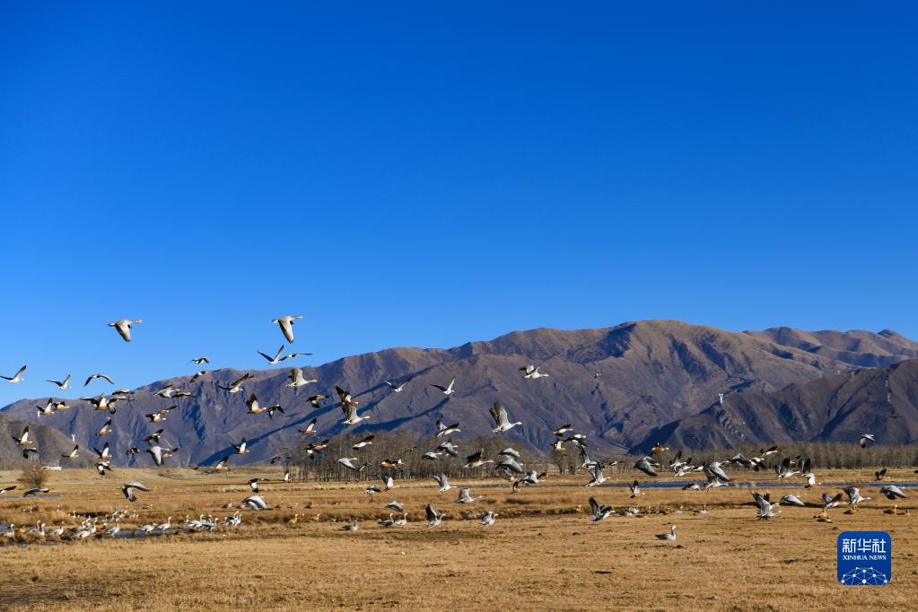 唐嘎鄉(xiāng)位于拉薩市達(dá)孜區(qū)東北部,這里每年冬季都會(huì)迎來(lái)黑頸鶴、斑頭雁、赤麻鴨等候鳥。這些在此越冬的“客人”和周邊的田園、濕地共同構(gòu)成高原冬季美景。