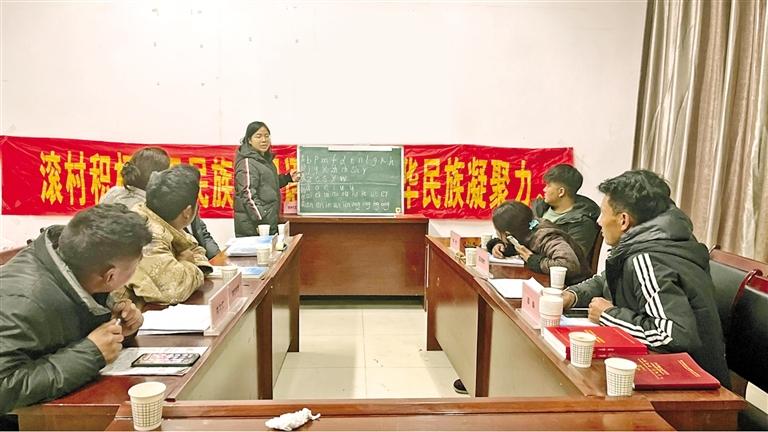 今年以來(lái),駐朗縣洞嘎鎮(zhèn)滾村工作隊(duì)積極組織村“兩委”班子開(kāi)展國(guó)家通用語(yǔ)言文字培訓(xùn),提升村干部運(yùn)用國(guó)家通用語(yǔ)言文字能力,增強(qiáng)村干部服務(wù)群眾水平,不斷鑄牢中華民族共同體意識(shí)。