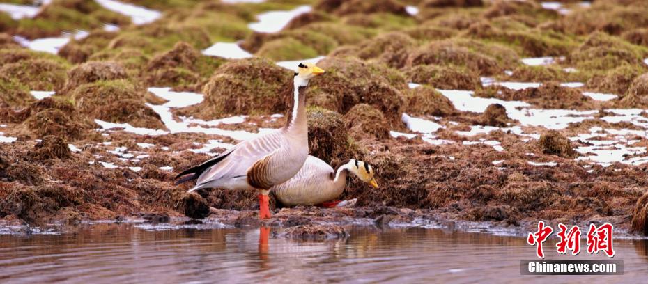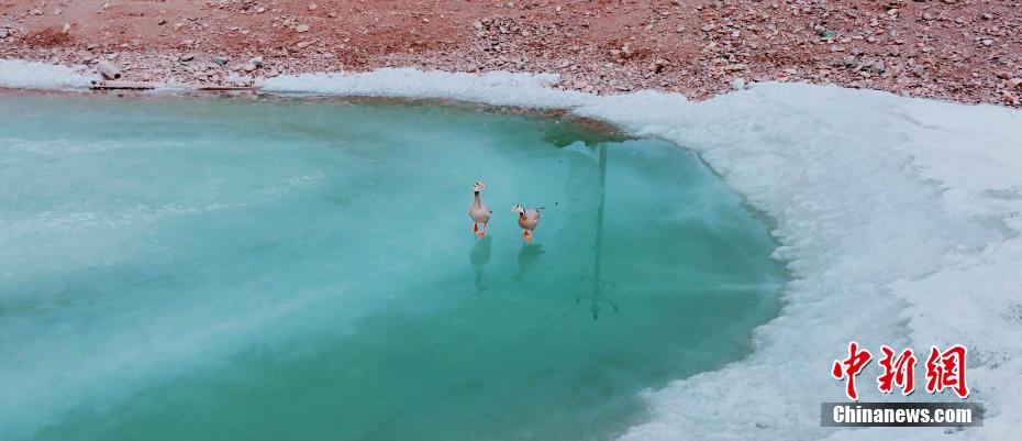 立夏以來,在位于祁連山國家公園內(nèi)的青海省海北藏族自治州祁連縣,當(dāng)?shù)孛癖娕臄z到多種野生動(dòng)物活動(dòng)影像。圖為斑頭雁在冰面行走。