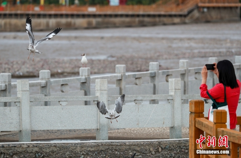 8月11日,青海省海北藏族自治州剛察縣,沙柳河國(guó)家濕地公園內(nèi)的大量水鳥吸引游客?!?中新社記者 賈天勇 攝