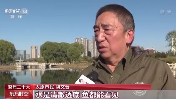 太原市民 胡文晉:水是清澈透底,魚都能看見,綠色比較多了,非常幸福,有獲得感、幸福感。二十大以后,我相信總書記會帶領我們過上更加幸福美滿的生活,更加環(huán)境優(yōu)美。