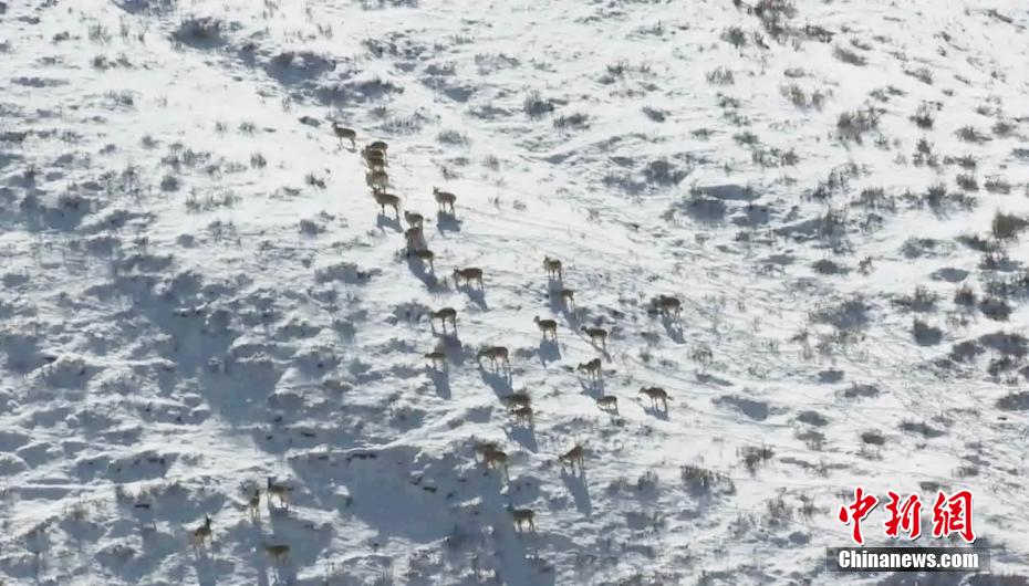 初冬時(shí)節(jié),青海省烏蘭縣攝影愛(ài)好者在烏蘭縣境內(nèi)發(fā)現(xiàn)近百只巖羊在崖壁間集體覓食,場(chǎng)面壯觀。據(jù)了解,巖羊?qū)賴?guó)家二級(jí)重點(diǎn)保護(hù)野生動(dòng)物,常年生活在海拔2000到3000米的高山裸巖、草甸、山谷之中,具有極高的攀巖技術(shù),被稱為“巖壁上的精靈”。圖為巖羊群在雪地里覓食。 烏蘭縣融媒體中心 供圖