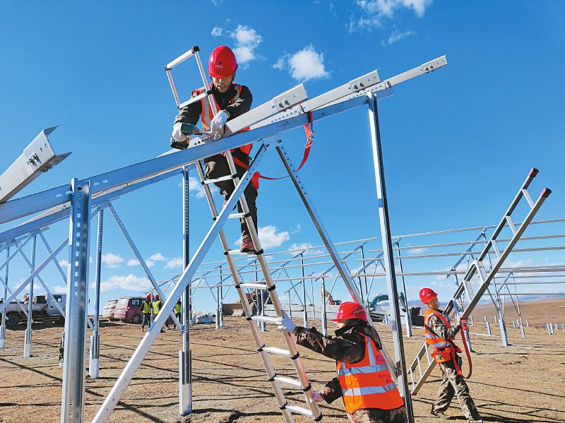 安裝光伏支架。 雅礱江公司供圖