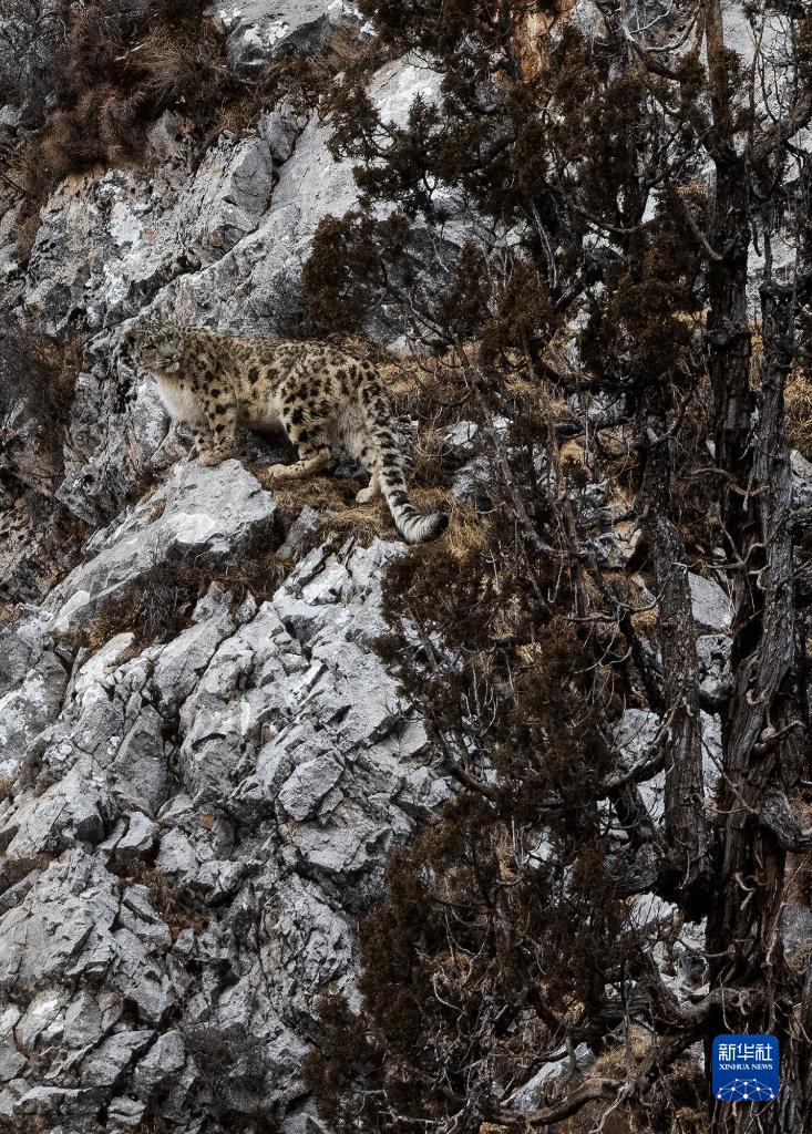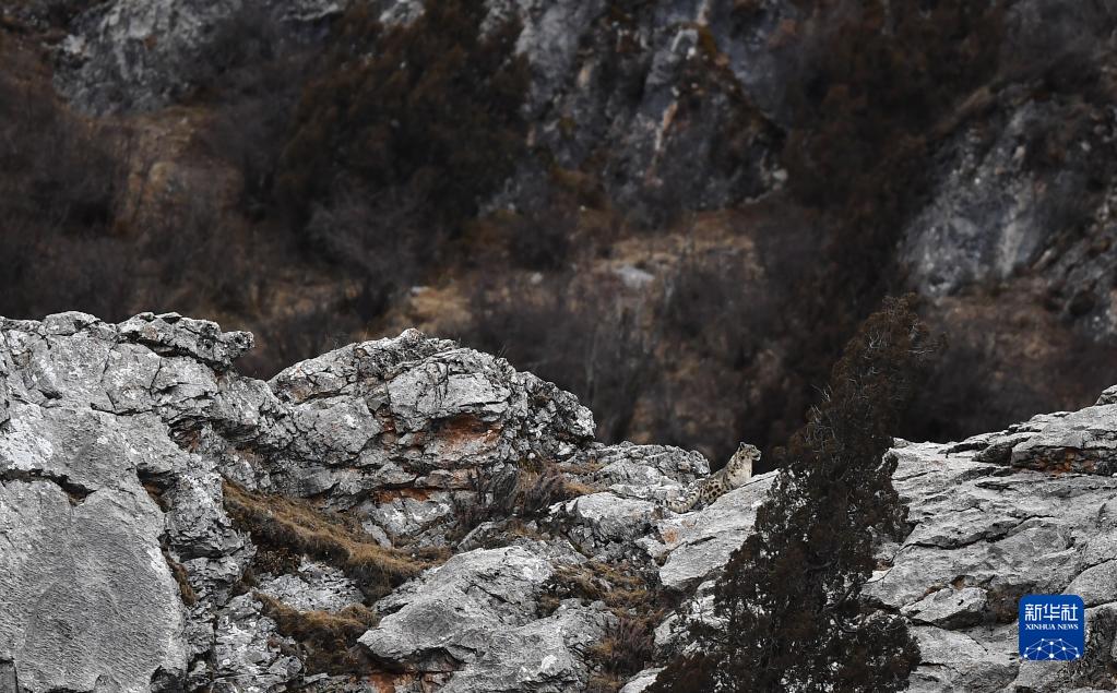 2月21日,在青海省玉樹(shù)藏族自治州雜多縣昂賽鄉(xiāng)境內(nèi)的昂賽大峽谷內(nèi),一只雪豹正在活動(dòng)。新華社記者 張宏祥 攝