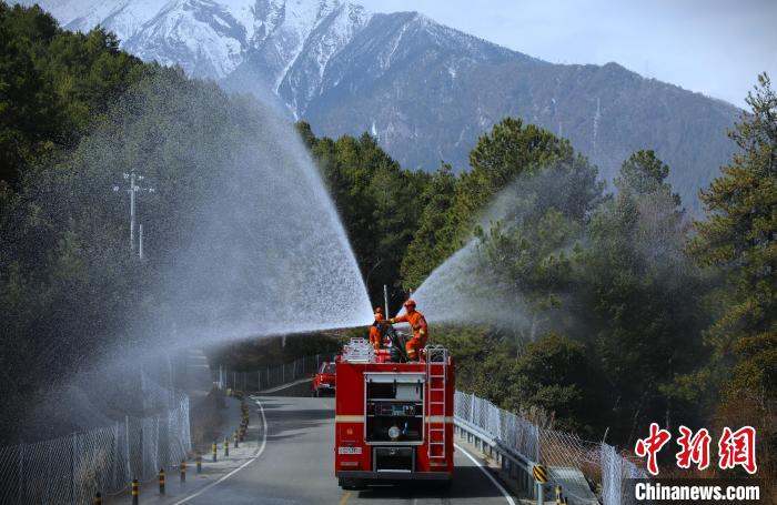重點林區(qū)開展灑水增濕作業(yè)。 西繞拉翁 攝