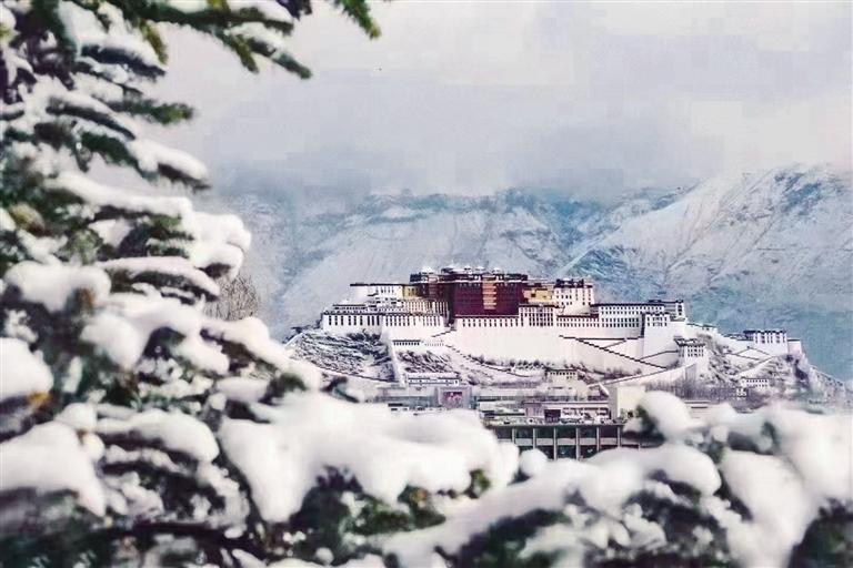 3月28日清晨,拉薩市區(qū)迎來一場(chǎng)降雪。近處的綠柳、紅花、一池春水,遠(yuǎn)處的布達(dá)拉宮,白雪掩映下的拉薩更顯古樸厚重。雪簌簌地落在屋檐、路面、樹干、花枝上,側(cè)耳傾聽,正是雪落下的聲音。