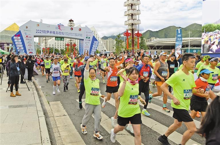8月27日,2023拉薩半程馬拉松在拉薩市鳴槍開跑。賽事設(shè)置半程馬拉松、競(jìng)速跑(10.520公里)、健康跑(5公里)三個(gè)組別。來(lái)自全國(guó)各地的約4000名馬拉松愛好者參加比賽。經(jīng)過(guò)激烈角逐,索朗才仁和次仁措姆分別以1小時(shí)10分3秒和1小時(shí)23分48秒的成績(jī)撞線,雙雙衛(wèi)冕男、女子組半程馬拉松冠軍。