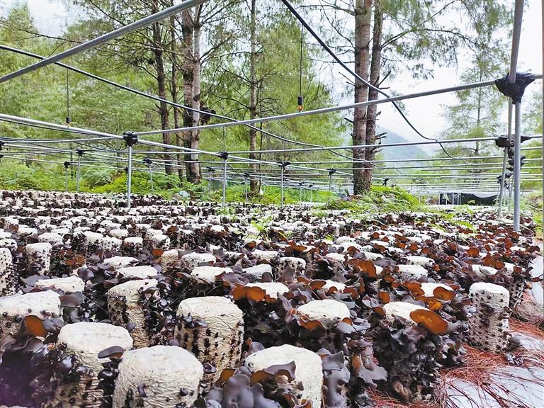 圖為格當鄉(xiāng)布龍村林下種植場種植的黑木耳。郎玲 記者 王敏 攝