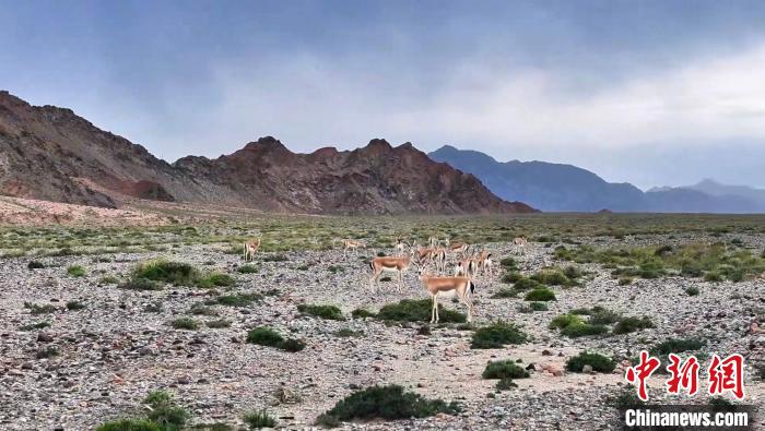 圖為成群鵝喉羚覓食。 烏蘭縣融媒體中心供圖