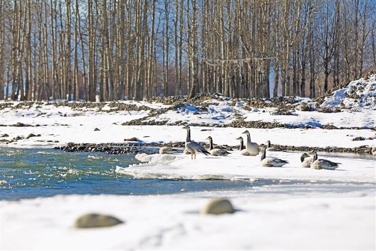 墨竹瑪曲河邊的斑頭雁。
