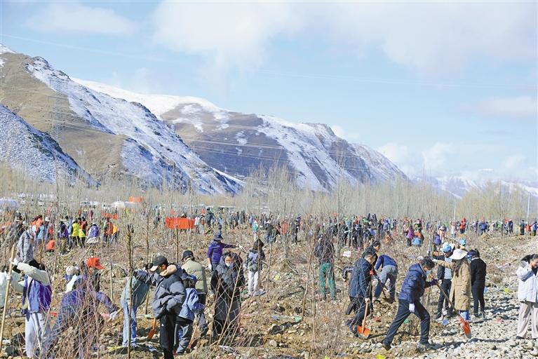 墨竹工卡縣干部職工秋季植樹現(xiàn)場(chǎng)。