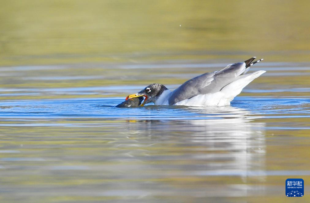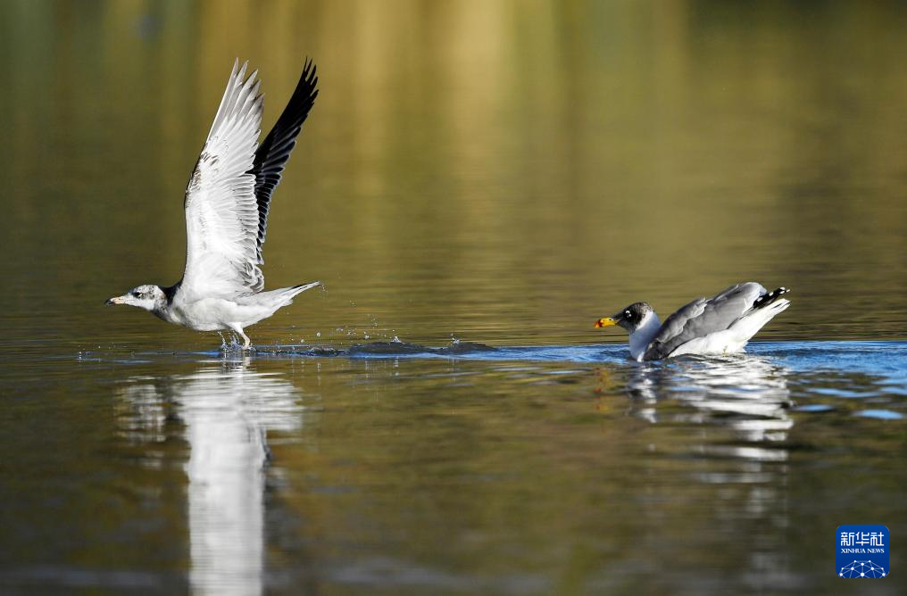 金秋十月,漁鷗在西藏拉薩市國家級自然保護區(qū)拉魯濕地里嬉戲,惹人喜愛。