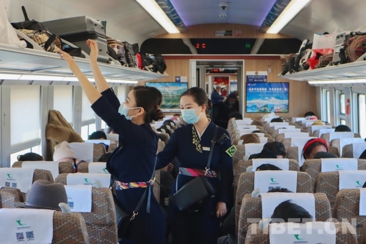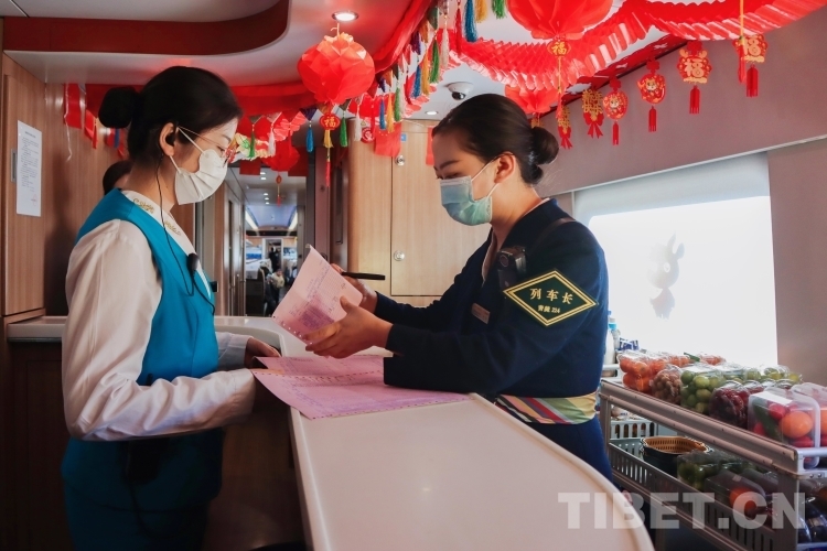 在拉日鐵路上的每一列高原動(dòng)車(chē)組列車(chē)中,1名列車(chē)長(zhǎng),3名乘務(wù)員,要負(fù)責(zé)9節(jié)車(chē)廂,755名乘客的乘務(wù)工作。從上車(chē)查驗(yàn)車(chē)票、行李安全擺放、列車(chē)禁煙宣傳,到途中協(xié)助乘客補(bǔ)票、提醒乘客到站信息等,列車(chē)乘務(wù)員們幾乎沒(méi)有時(shí)間休息。