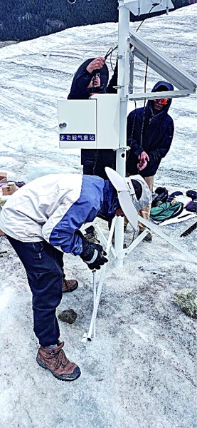 成都理工大學(xué)科研團(tuán)隊(duì)在波密米堆冰川建設(shè)冰川冰崩災(zāi)害立體監(jiān)測(cè)站。李廣攝/光明圖片