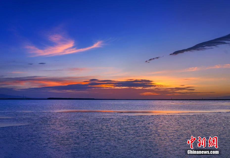 夏日,地處青海省海西州茫崖市的尕斯庫勒湖處處盡顯自然之美,140平方公里的面積,湖水清澈見底,天空與湖水融為一體。圖為尕斯庫勒湖。