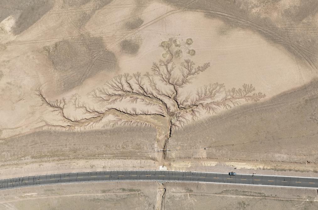 翌日清晨,我們往甜水灣方向出發(fā),同行的三輛皮卡車載滿各類物資。沒有信號,也沒有現成的路,車隊只能憑記憶和巡護時留下的車轍前行,沒有車轍時,形狀各異的山就是路標。