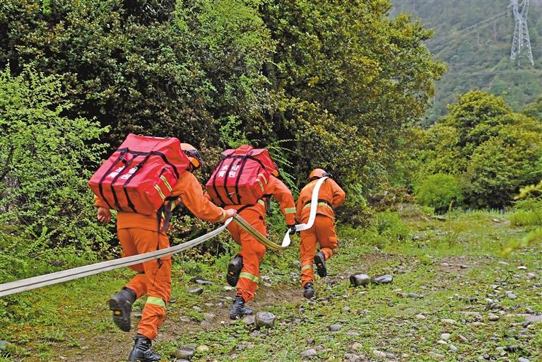 “山坡處有一火點,第一組迅速架設水泵,采取并串聯(lián)結合方式進行處置”。隨著指揮員一聲令下,林芝市森林消防支隊巴宜中隊的森林消防員迅即按照各自分工就近取水、啟動水泵、鋪設管帶……這是林芝市森林消防支隊巴宜中隊以駐訓為契機開展山地水泵架設與撤收實戰(zhàn)訓練的場景。