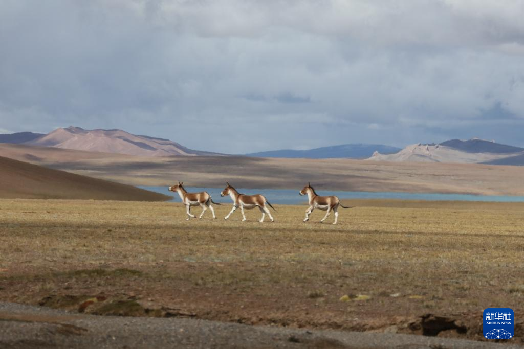 這是令戈錯湖邊的藏野驢群(9月8日攝)。新華社記者 劉詩平 攝