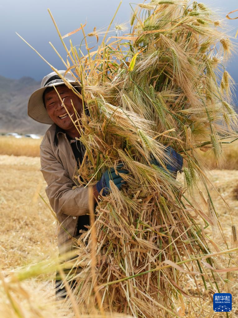 9月10日,西藏日喀則市白朗縣巴扎鄉(xiāng)農(nóng)民在收獲青稞。新華社記者 晉美多吉 攝