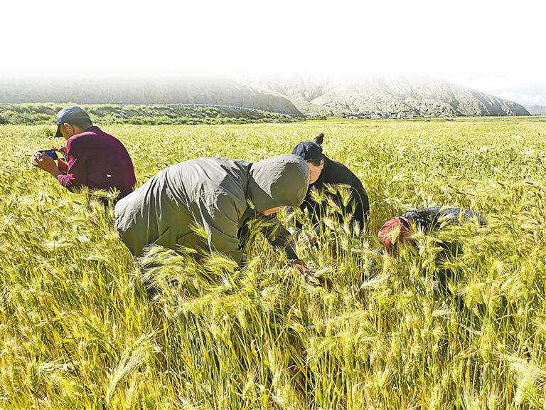 圖為農(nóng)業(yè)專技人員深入山南農(nóng)區(qū)開展糧食測(cè)產(chǎn)工作。記者 巴桑旺姆 攝