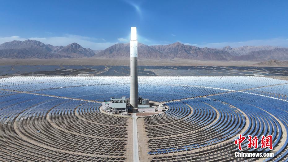 4月15日,航拍位于青海省海西蒙古族藏族自治州德令哈市境內(nèi)的青海中控50MW光熱電站,如戈壁灘上的“藍(lán)色海洋”。該光熱電站是中國(guó)首批光熱發(fā)電示范項(xiàng)目之一,也是全球首個(gè)年發(fā)電量超過(guò)年設(shè)計(jì)發(fā)電量的塔式熔鹽儲(chǔ)能光熱電站。裝機(jī)容量達(dá)50MW,鏡場(chǎng)采光面積達(dá)54.27萬(wàn)平方米,配置有7小時(shí)熔鹽儲(chǔ)能系統(tǒng),每年可節(jié)約標(biāo)準(zhǔn)煤約4.8萬(wàn)噸,減排二氧化碳?xì)怏w約12.4萬(wàn)噸。(無(wú)人機(jī)照片)