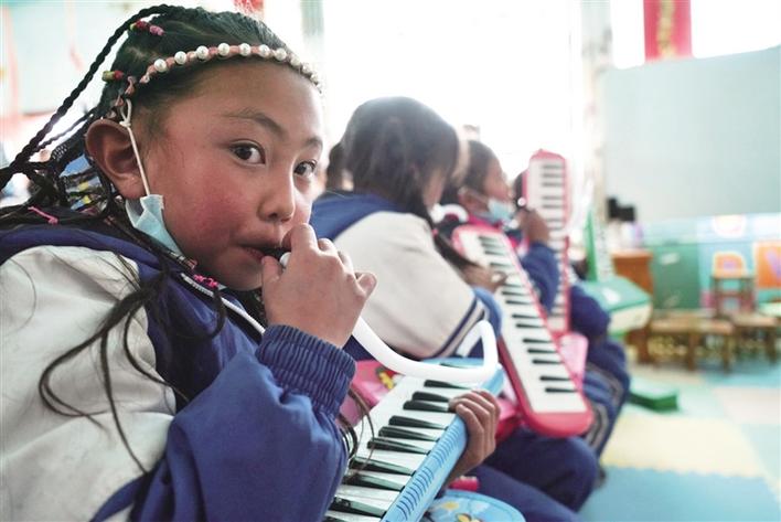 口風(fēng)琴擁有良好的和聲能力,廣泛應(yīng)用于各類(lèi)音樂(lè)中。但是,對(duì)于果組小學(xué)的孩子們來(lái)說(shuō),這是他們第一次見(jiàn)到口風(fēng)琴。布扎西是該小學(xué)三年級(jí)的一名小學(xué)生,他是校園“小歌星”,每年六一兒童節(jié)學(xué)校舉行文藝匯演時(shí),他都要演唱自己的拿手歌曲——《我的家鄉(xiāng)》。第一次見(jiàn)到口風(fēng)琴,布扎西非常開(kāi)心:“謝謝柏雪老師送給我們的禮物,我以后會(huì)好好學(xué)習(xí),爭(zhēng)取早日吹奏《小星星》!”