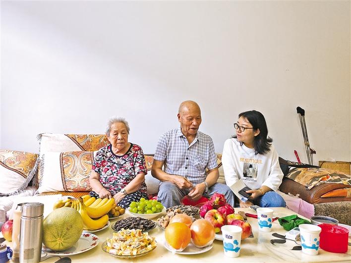 圖為郭志云老人(中)在家中接受記者采訪。西藏日報記者 王莉 張思雨 攝