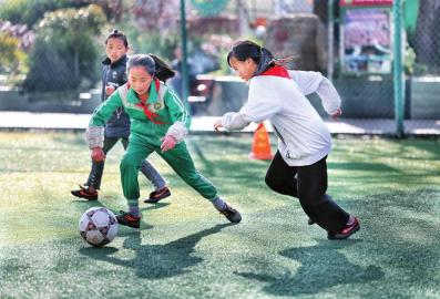 格日么色格參加學校的系統(tǒng)訓練已有兩個月,雖然球感和跑位還較弱,但也在不斷進步。如今她每天放學后都會再到球場加練半個小時,晚上回家做完作業(yè)也會在壩子里顛一個多小時的球?!艾F(xiàn)在我不僅能射門,帶球也好了很多?!备袢彰瓷癖硎荆约菏钦嫘南矚g足球?!疤咦闱虿粌H能讓我感到快樂,還讓我看到希望——長大后,我想出去看更廣闊的世界。”