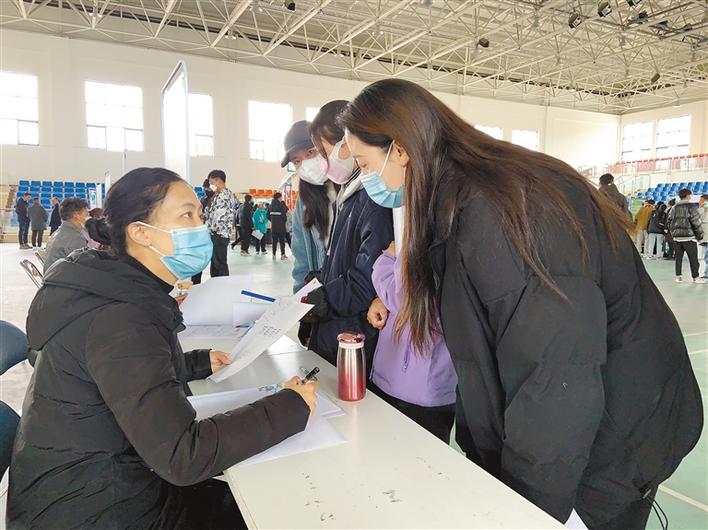圖為西藏職業(yè)技術(shù)學(xué)院旅游與文化學(xué)院2021年春季校園專場招聘會上,用人單位在了解學(xué)生就業(yè)意向。 德吉曲珍 攝