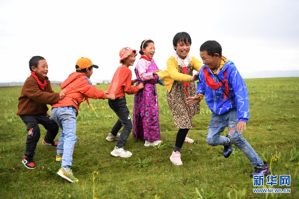 暑假來(lái)臨,在海拔3000多米的甘肅省甘南藏族自治州瑪曲草原上,瑪曲縣河曲馬場(chǎng)小學(xué)的孩子們?cè)诶蠋煹膸ьI(lǐng)下,暫別課堂學(xué)習(xí),用豐富多彩的游戲開啟歡樂(lè)暑假時(shí)光。